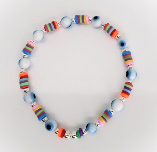 Pulsera Ojo Turco Con Fimo Multicolor, Elástico