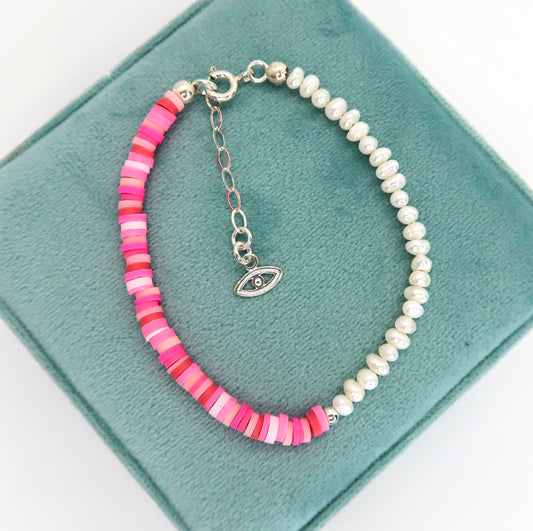 Pulsera Borreguito de la Abundancia, Ojito turco y Perla Cultivada