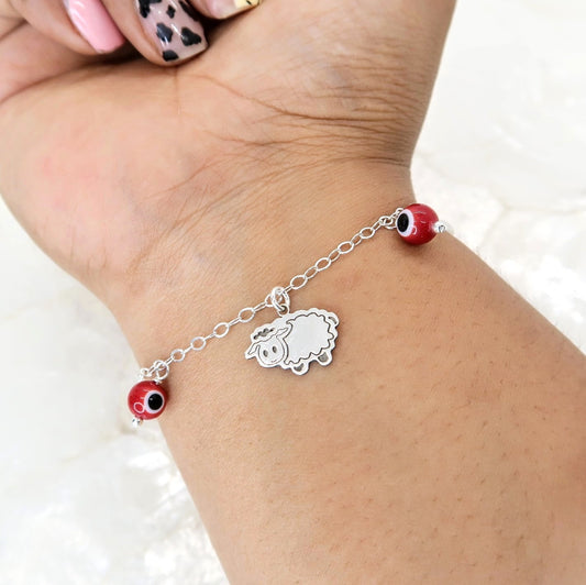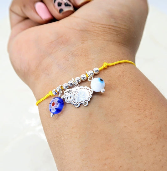 Pulsera Borreguito de la Abundancia, Ojo Turco y Flor